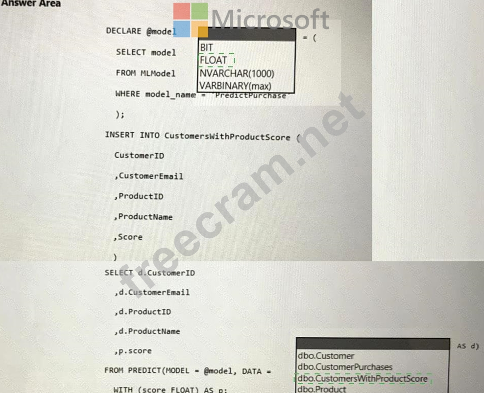 Box 2: dbo.CustomerWithProductScore