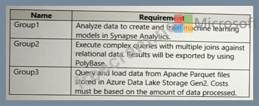 You are configuring Azure Synapse Analytics pools to support the Azure Active Directory groups shown in the following table.