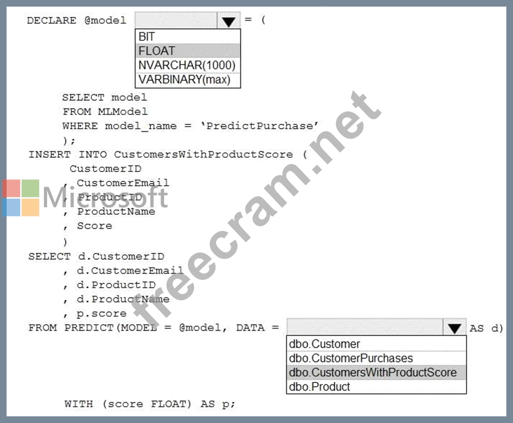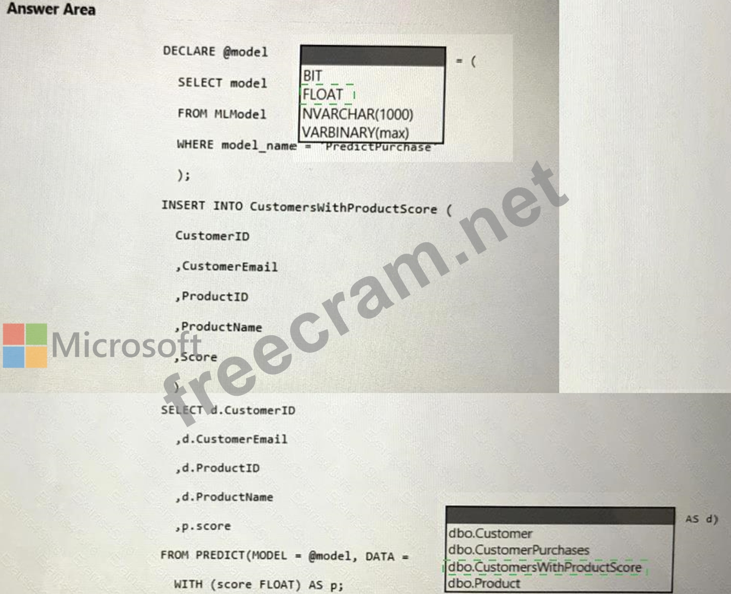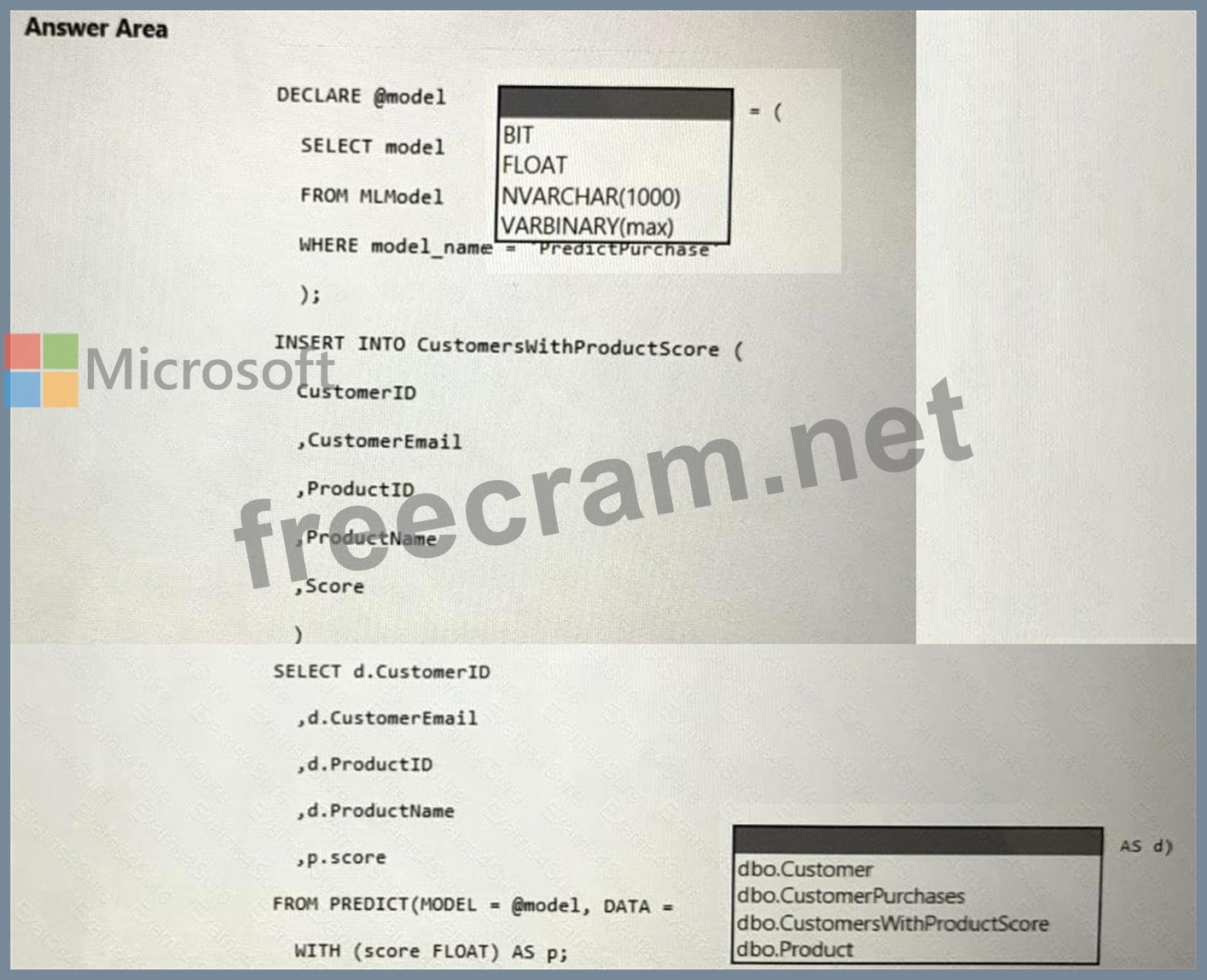 Question 32: You need to populate the CustomersWithProductScore table. Ho...