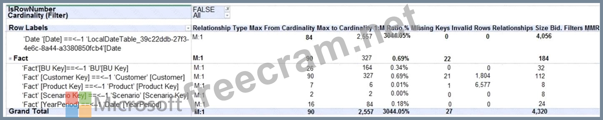 Question 55: You use Vertipaq Analyzer to analyze a model. The Relationsh...
