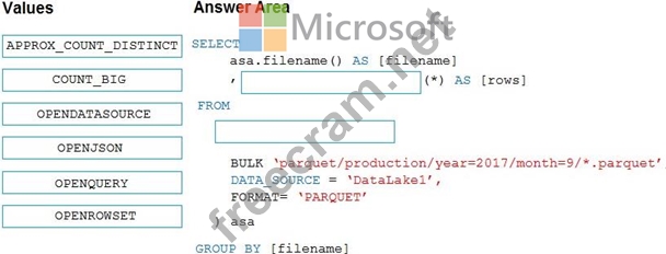 How should you complete the Transact-SQL statement? To answer, drag the appropriate values to the targets. Each value may be used once, more than once, or not at all. You may need to drag the split bar between panes or scroll to view content.