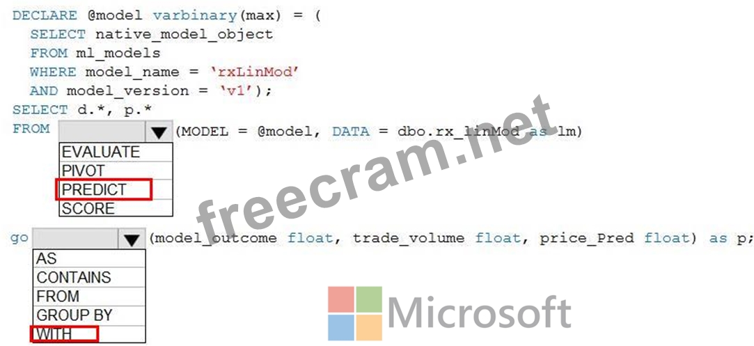 How should you complete the Transact-SQL query? To answer, select the appropriate options in the answer area.