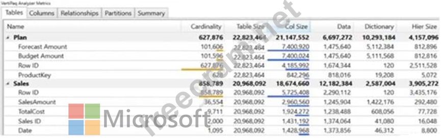 Question 56: You are optimizing a Power Bl data model by using DAX Studio...