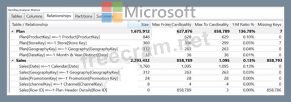 Question 53: You use Vertipaq Analyzer to analyze a model. The Relationsh...