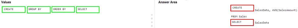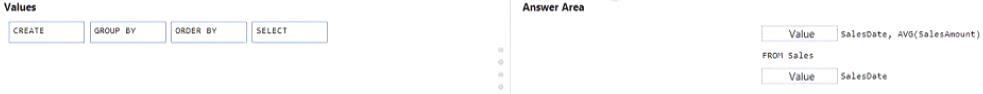 How should you complete the query? To answer, drag the appropriate values to the correct targets. Each value may be used once, more than once, or not at all. You may need to drag the split bar between panes or scroll to view content.