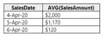 You need to query the table to return the average sales amount day. The output must produce the following results.