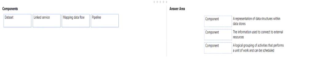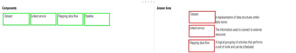 match the Azure data factory components to the appropriate descriptions.