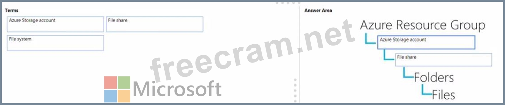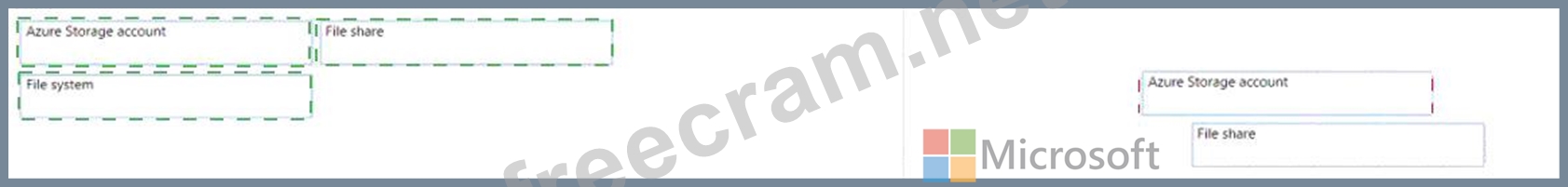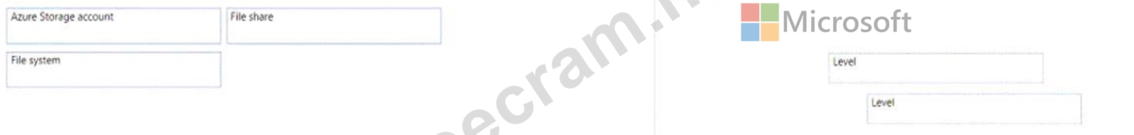 Match the Azure Data Lake Storage terms to the appropriate levels in the hierarchy.