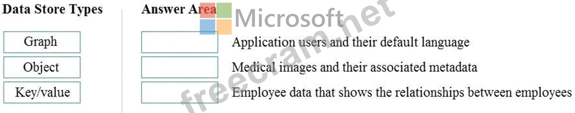 To answer, drag the appropriate data store type from the column on the left to its scenario on the right. Each data store type may be used once, more than once, or not at all.