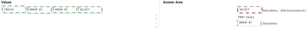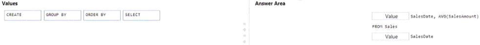 How should you complete the query? To answer, drag the appropriate values to the correct targets. Each value may be used once, more than once, or not at all. You may need to drag the split bar between panes or scroll to view content.