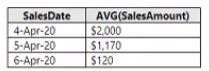 You need to query the table to return the average sales amount day. The output must produce the following results.