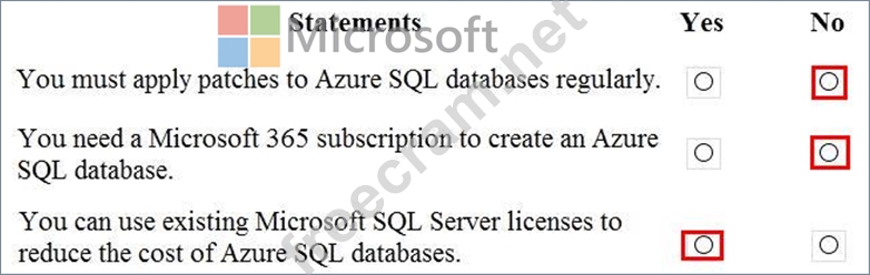 For each of the following statements, select Yes if the statement is true. Otherwise, select No.