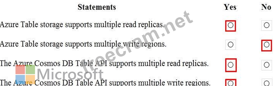 For each of the following statements, select Yes if the statement is true. Otherwise, select No.