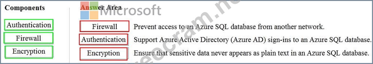To answer, drag the appropriate component from the column on the left to its scenario on the right. Each component may be used once, more than once, or not at all.