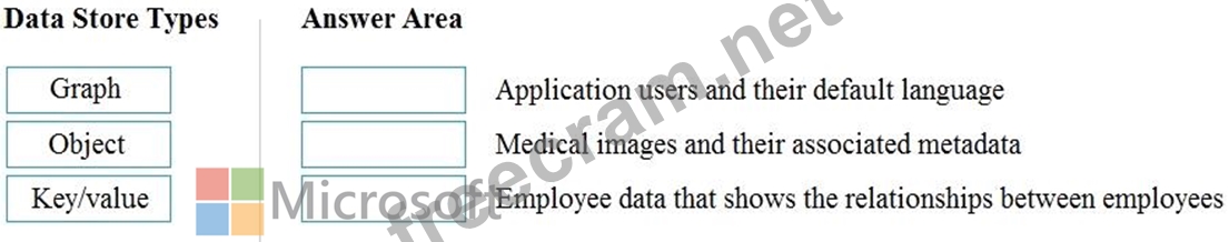 To answer, drag the appropriate data store type from the column on the left to its scenario on the right. Each data store type may be used once, more than once, or not at all.