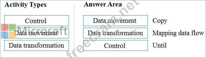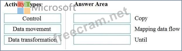 To answer, drag the appropriate activity type from the column on the left to its Data Factory activity on the right. Each activity type may be used once, more than once, or not at all.