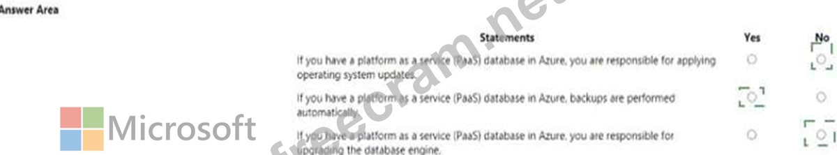 For each of the following statements, select Yes if the statement is true. Otherwise, select No.