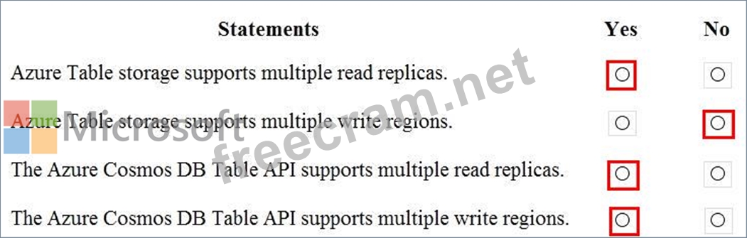 For each of the following statements, select Yes if the statement is true. Otherwise, select No.