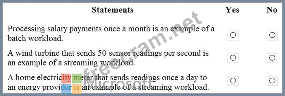 For each of the following statements, select Yes if the statement is true. Otherwise, select No.