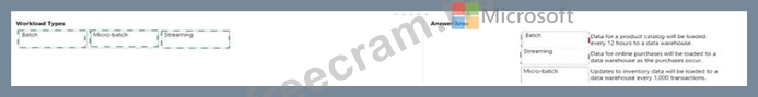 To answer, drag the appropriate workload type from the column on the left to its scenario on the right. Each workload type may be used once, more than once or not at all.