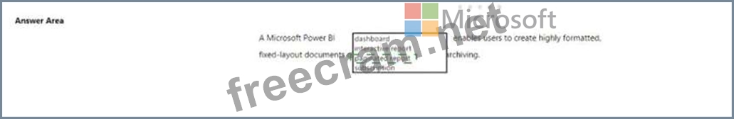 Question 84: Which three objects can be added to a Microsoft Power BI das...