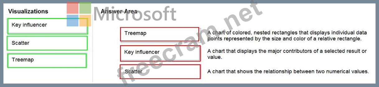 To answer, drag the appropriate visualization type from the column on the left to its description on the right. Each visualization type may be used once, more than once, or not at all.