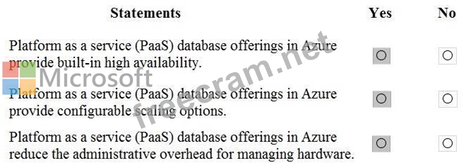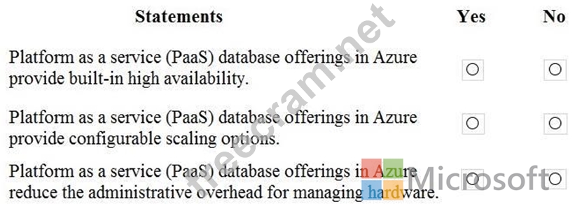 For each of the following statements, select Yes if the statement is true. Otherwise, select No.