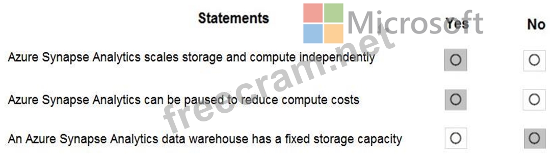 For each of the following statements, select Yes if the statement is true. Otherwise, select No.