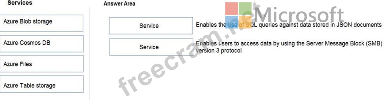 To answer, drag the appropriate service from the column on the left to its description on the right. Each service may be used once, more than once, or not at all.