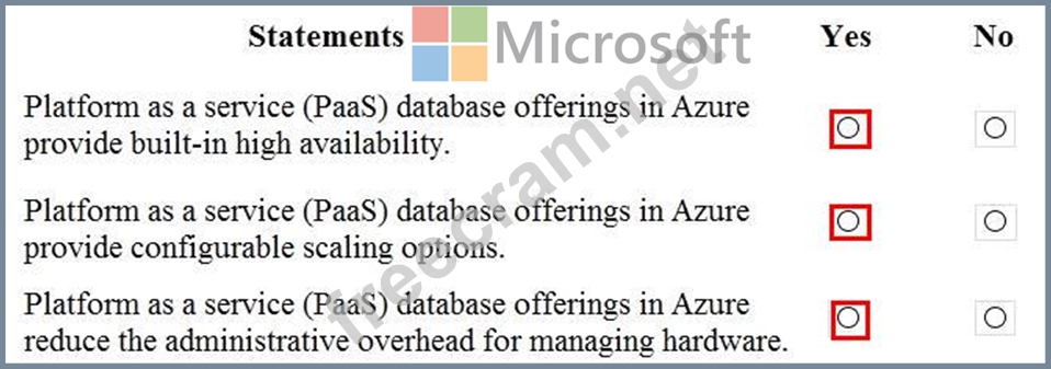 For each of the following statements, select Yes if the statement is true. Otherwise, select No.