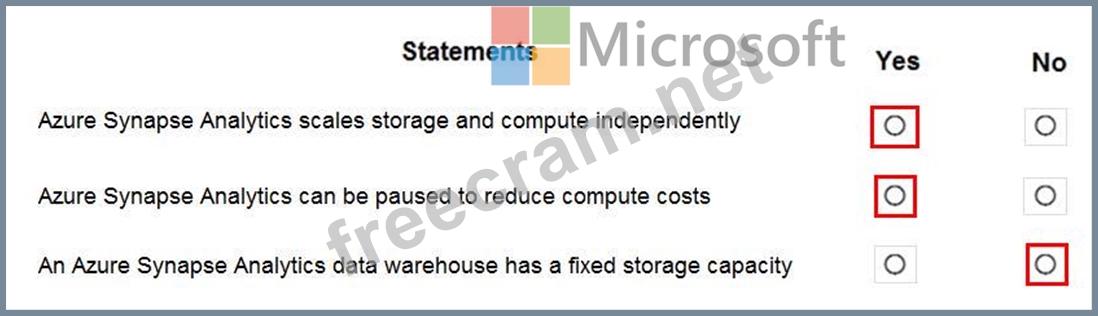 Question 7: HOTSPOT For each of the following statements, select Yes if ...