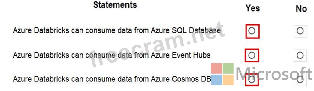 Question 7: HOTSPOT For each of the following statements, select Yes if ...