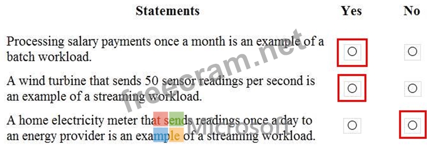 Question 7: HOTSPOT For each of the following statements, select Yes if ...