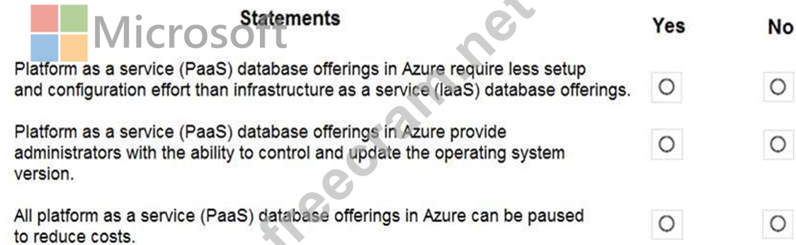 For each of the following statements, select Yes if the statement is true. Otherwise, select No.