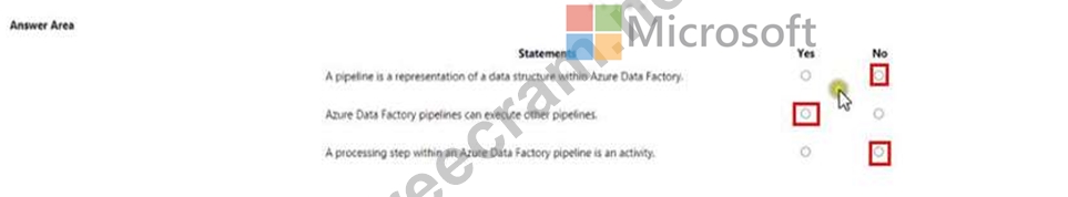 Question 168: match the Azure data factory components to the appropriate d...