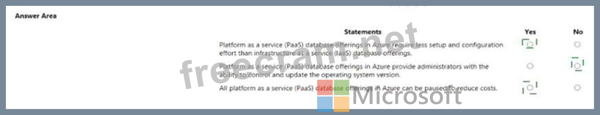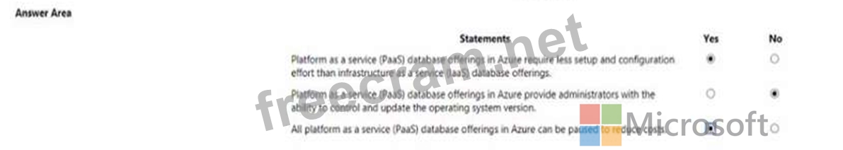 For each of the following statements. select Yes if the statement is true. Otherwise, select No.