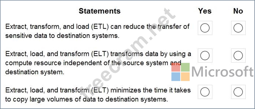 Question 7: HOTSPOT For each of the following statements, select Yes if ...