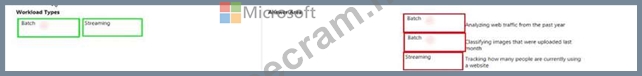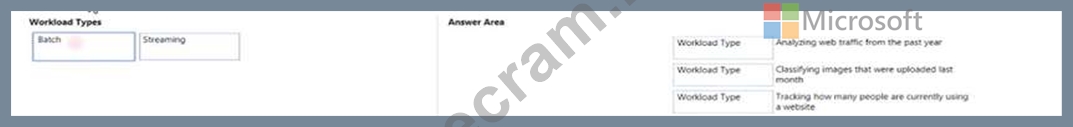 To answer, drag the appropriate workload type from the column on the left to its scenario on the right. Each workload type may be used once, more than once, or not at all.