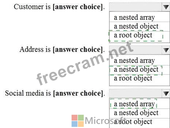 Question 207: You have the following JSON document. (Exhibit) Use the drop...
