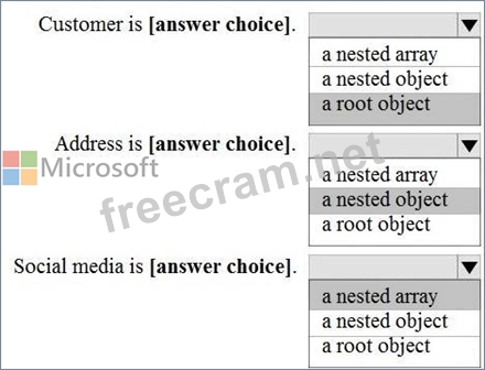 Question 86: You have the following JSON document. (Exhibit) Use the drop...