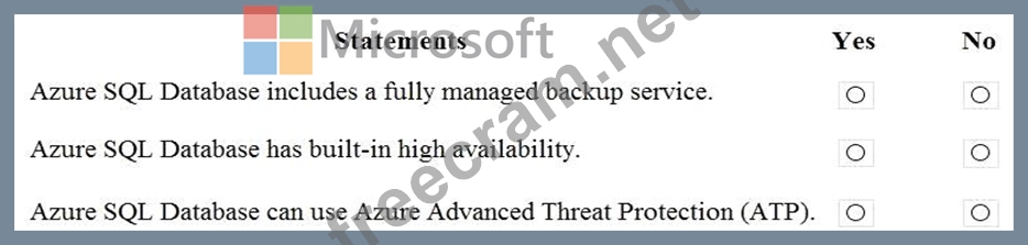 For each of the following statements, select Yes if the statement is true. Otherwise, select No.