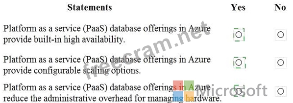 For each of the following statements, select Yes if the statement is true. Otherwise, select No.