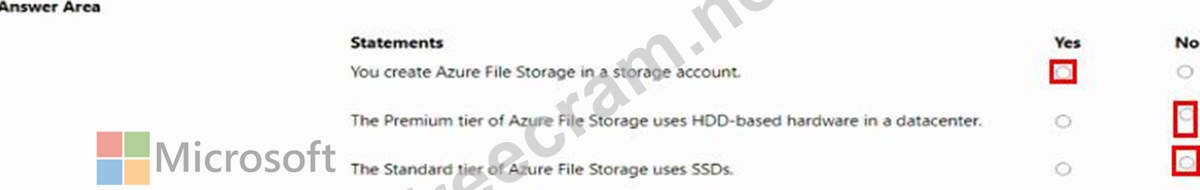 For each of the following statements, select Yes if the statement is true. Otherwise, select No. NOTE: Each correct selection is worth one point.