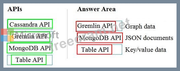 Question 82: Match the Azure Cosmos DB APIs to the appropriate data struc...