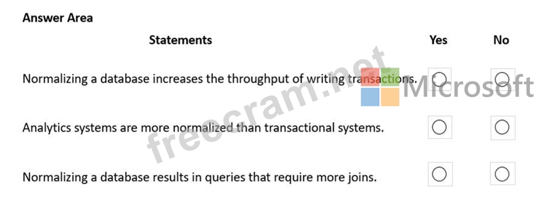 Question 55: Match the types of data to the appropriate Azure data servic...