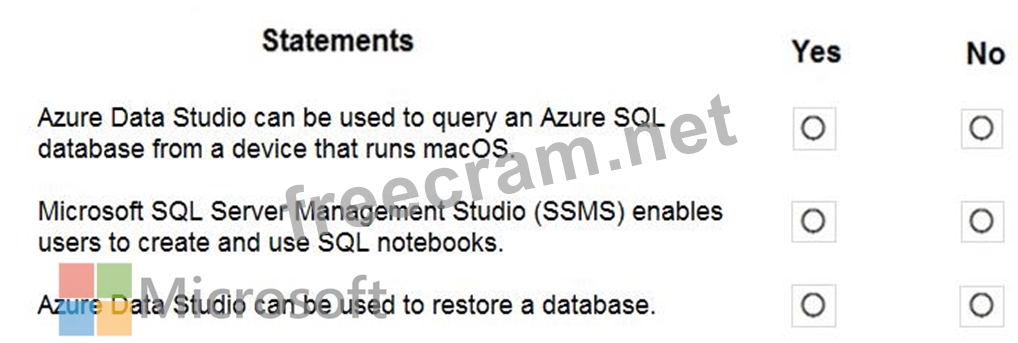 For each of the following statements, select Yes if the statement is true. Otherwise, select No.