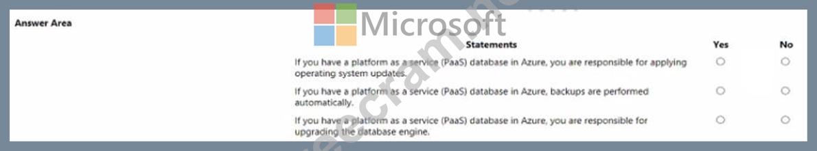 For each of the following statements, select Yes if the statement is true. Otherwise, select No.