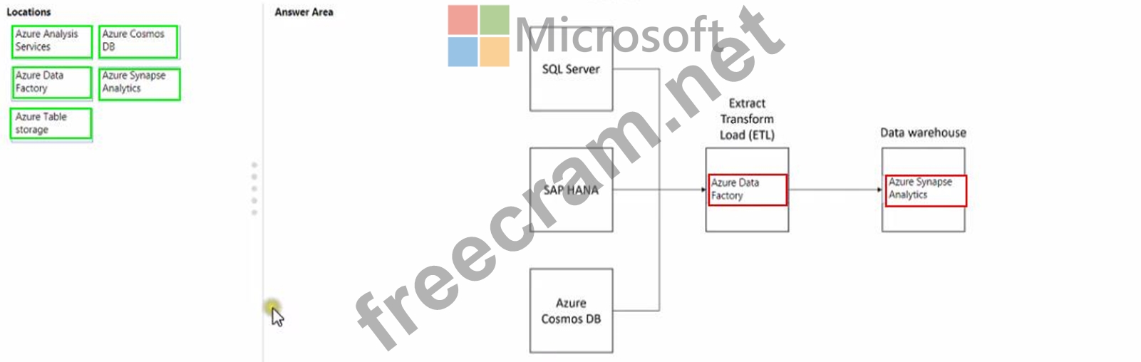 Question 102: Match the Azure services to the appropriate locations in the...