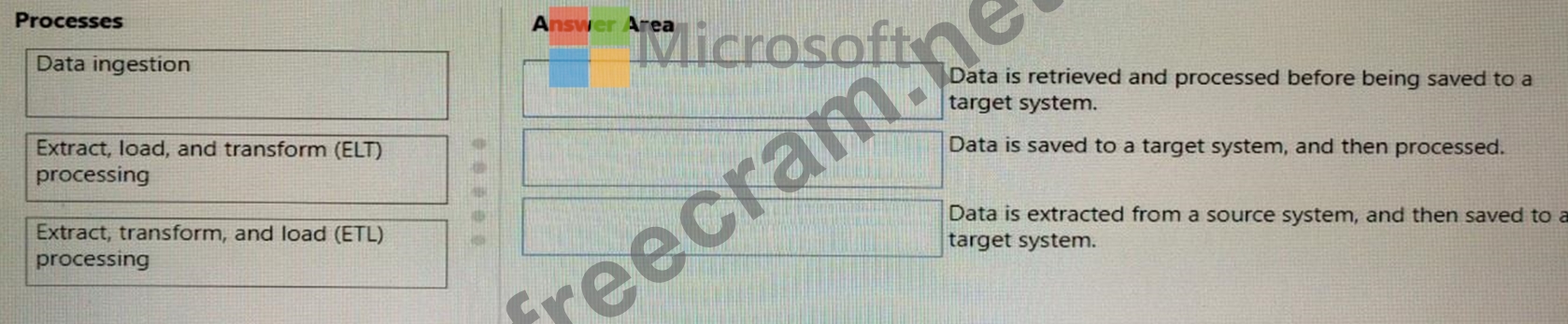 To answer, drag the appropriate process from the column on the left to its scenario on the right. Each process may be used once, more than once, or not at all.
