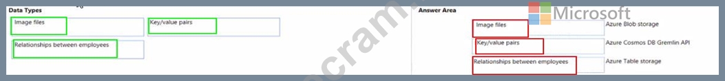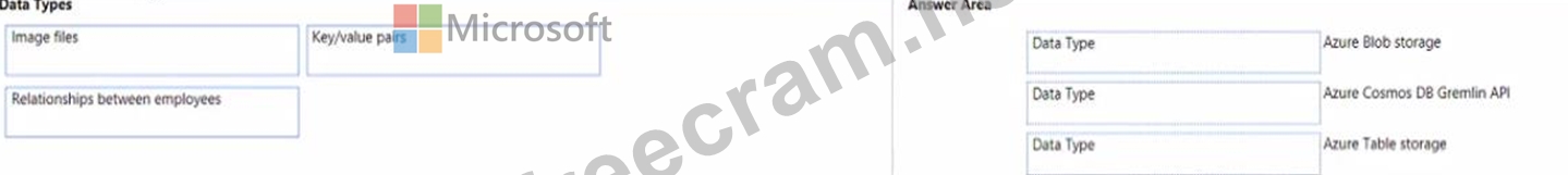 Question 55: Match the types of data to the appropriate Azure data servic...